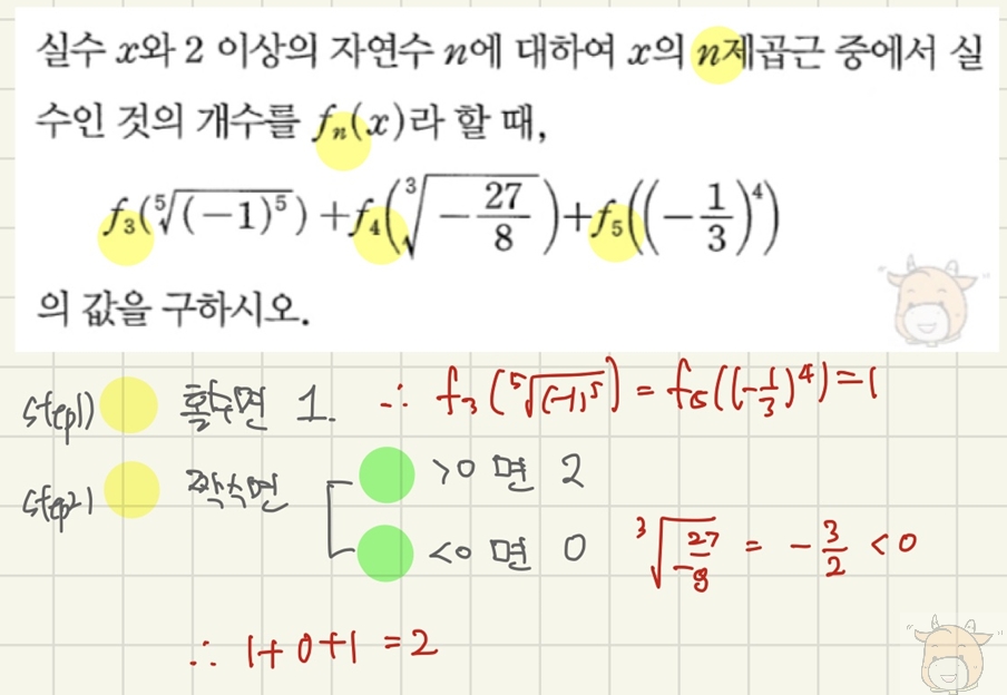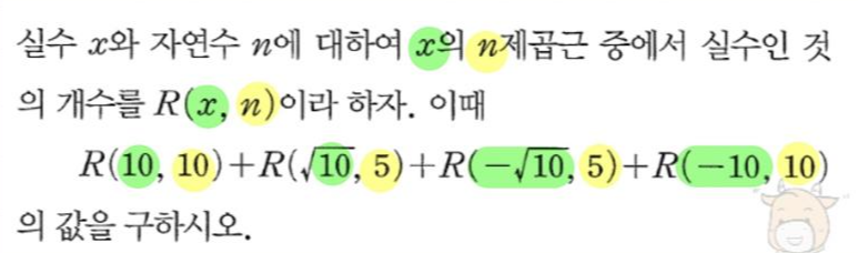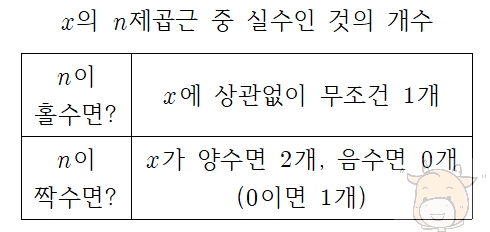 실근의 개수 오늘은 거듭제곱근 중 실근의 개수에 대한 내용을 정리하고 문제를 풀어보겠습니다. 이건 중요한 내용이라 이전에도 포스팅을 했었습니다. 그래서 간단한 기본기 문제를 풀고 싶으
