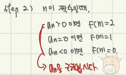 짝수인 경우에는 부호를 보시면 되겠죠?