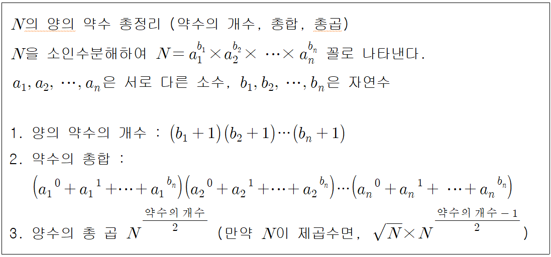 중학교 1학년때 배운 약수의 개수 문제가