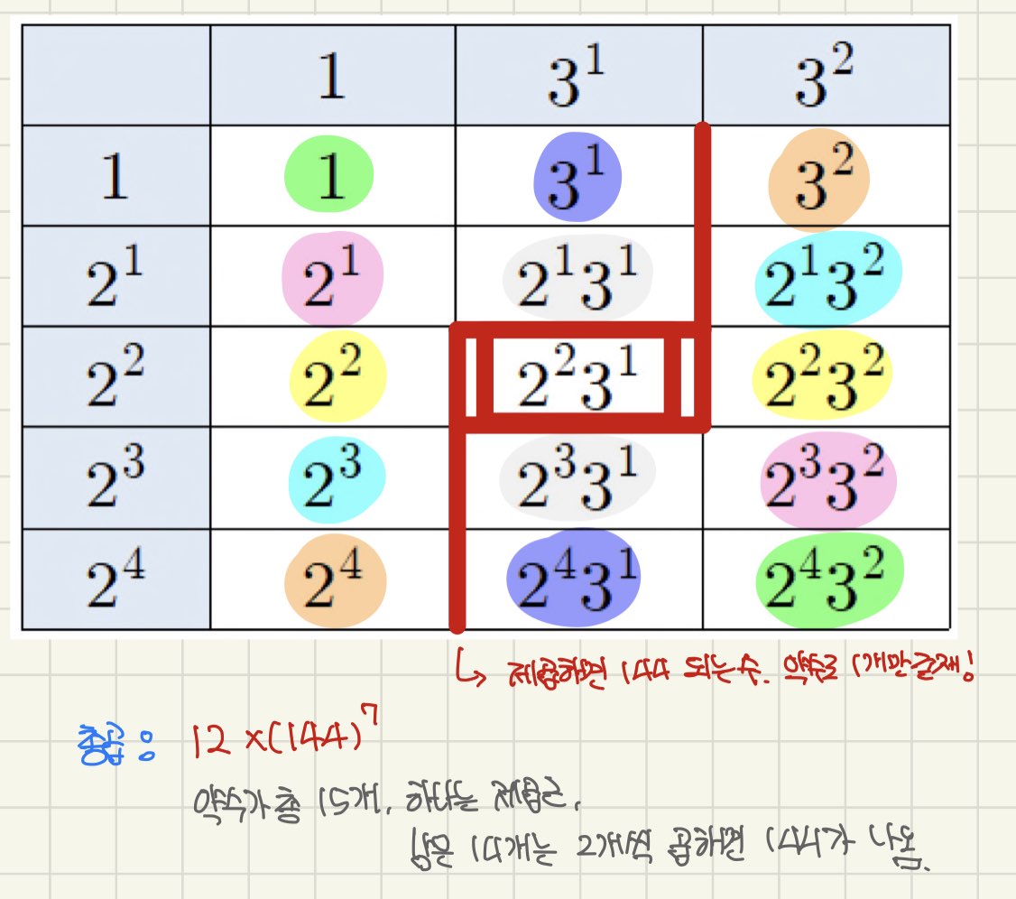 약수란 이 둘의 곱이므로 총 12개가 나옵니다.