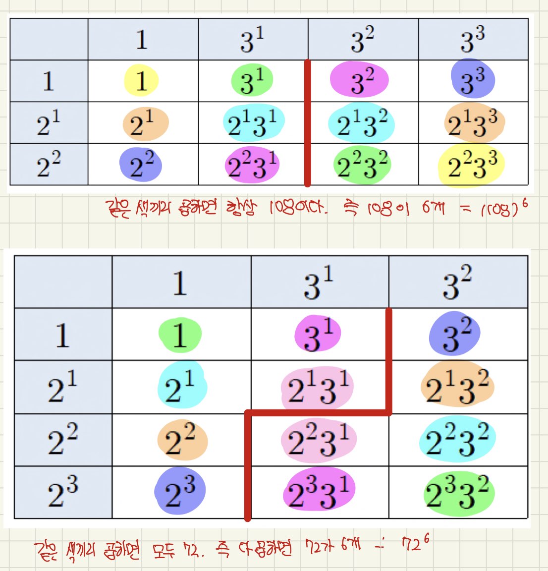 그리고 소인수인 2와 3도 각각