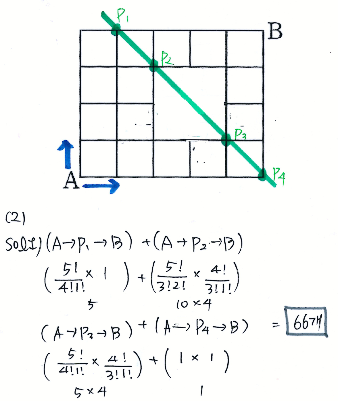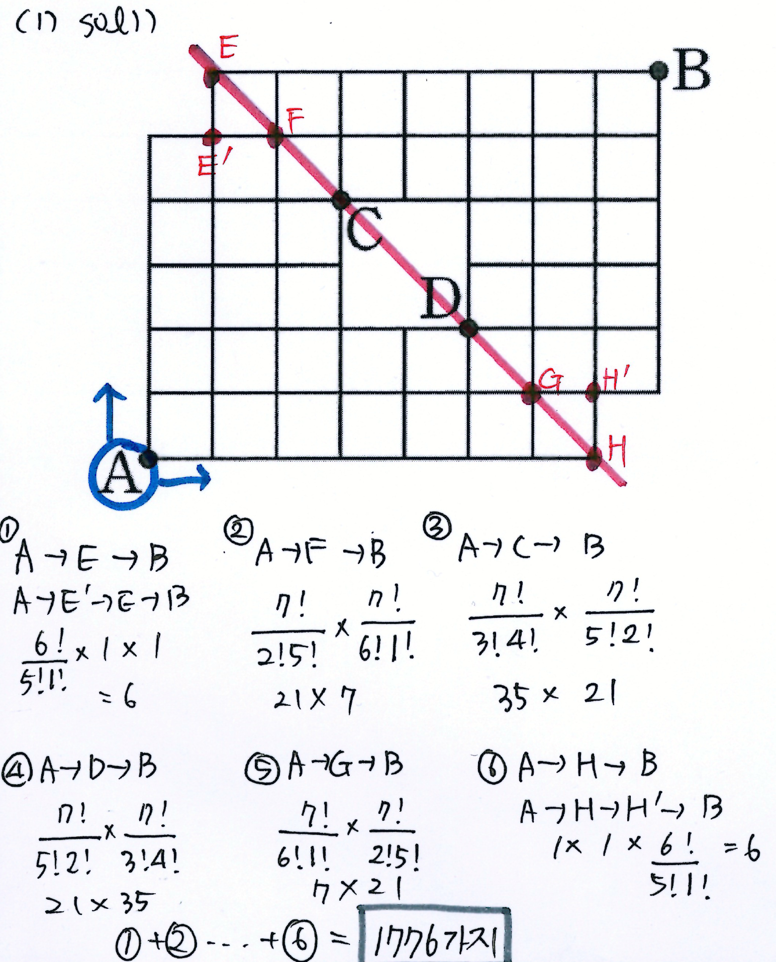 1. A에서 B까지 최단 거리로 가는 방법은 몇 가지인지 구하여라.