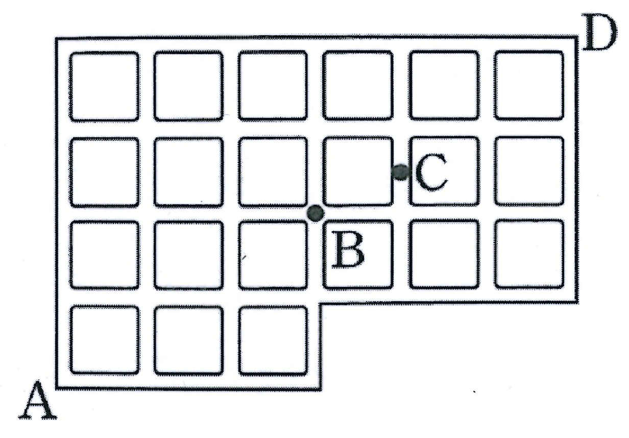 3. A에서 D로 가는 최단 경로 중 점 C를 지나지 않는 경로는 몇 가지인지 구하여라.