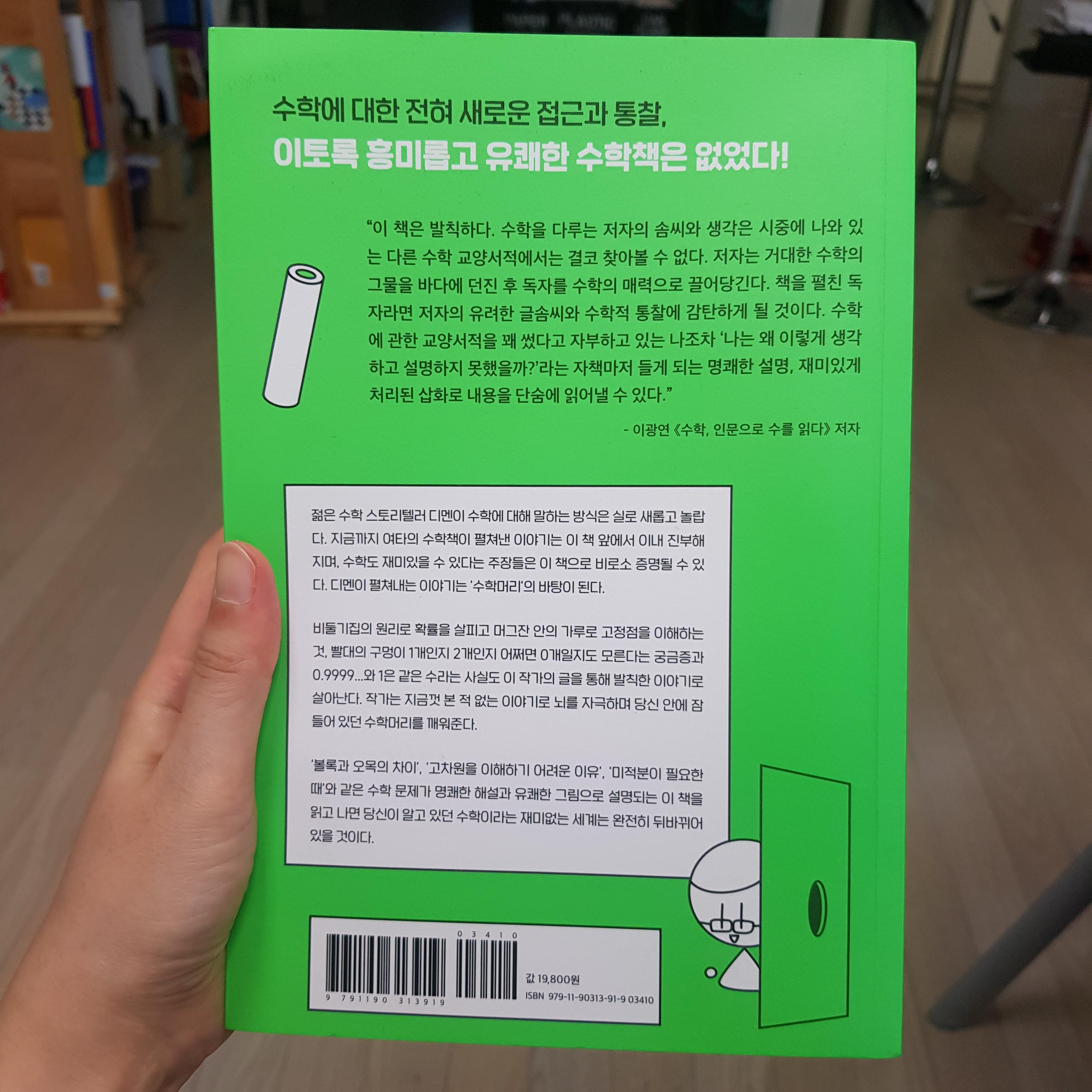 오늘 추천할 수학 책은 수학, 인문으로 수를 읽다입니다. 지금까지 읽어본 책 중 수학을 인문학과 가장 잘 엮은 책인 듯 합니다. 인문학적 소양과 수학 교양을 동시에 쌓기 좋은 책이에요. 개인