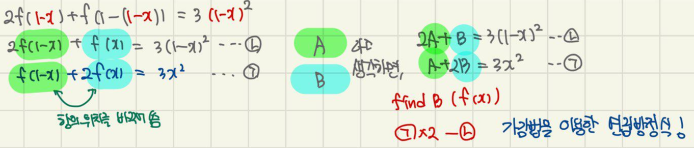 f(1-x)=A로, f(x)=B로 치환해서