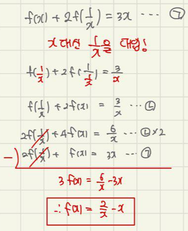 사실 고1은 함수방정식을 이용하여, 함수를 직접 구하기보다는, 특정 함숫값을 구하라는 문제가 많이 나오는 편이긴 합니다.