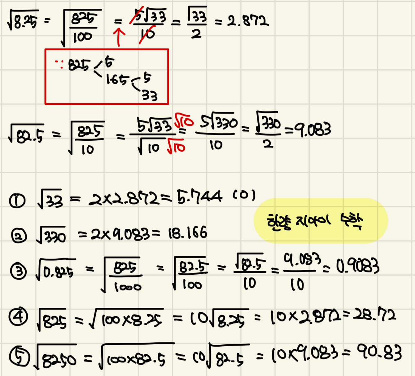 근호가 있는 식을 정리할 때,
