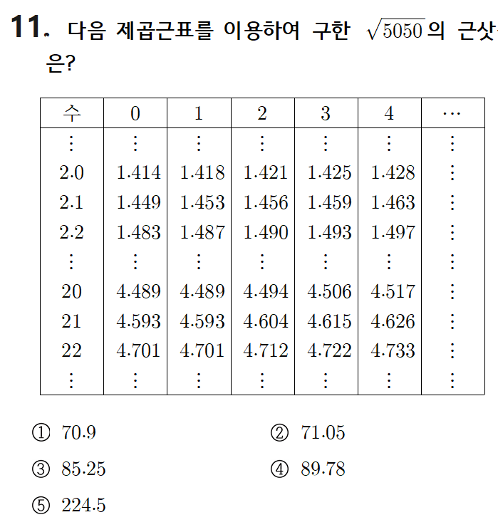 5050을 소인수 분해하면 5x5x202입니다. 여기서 202=100x2.02이므로, 50x√2.02의 값을 계산하면 됩니다.
