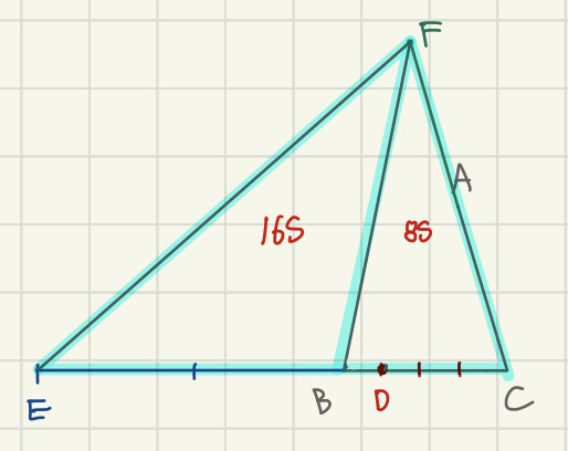 삼각형 ABC에서 선분 BC를 1:3으로 내분하는 점을 D, 선분 BC를 2:3으로 외분하는 점을 E, 선분 AB를 1:2로 외분하는 점을 F라 하자. 삼각형 FEB의 넓이는 삼각형 ABD의 넓이의 k배이다. 이때, 상수 k의 값을 구하시오.