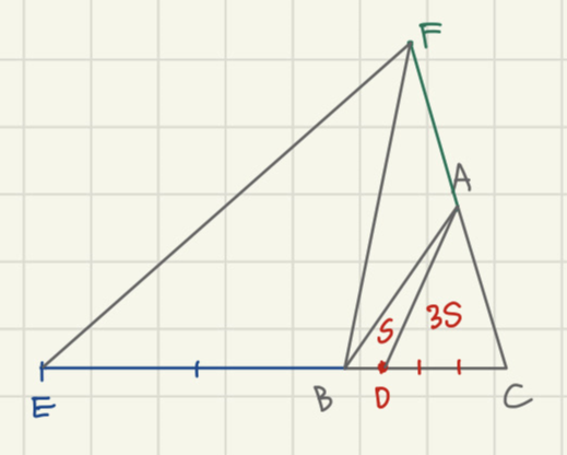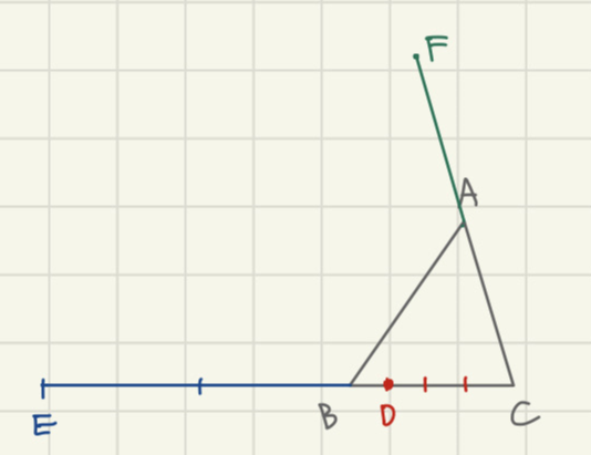 선분 AB를 1:2로 외분하는 점을 F라 하자.