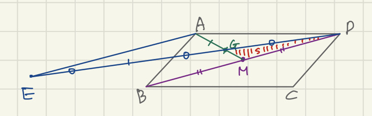 선분 GD를 2:3으로 외분하는 점을 E라고 하자.