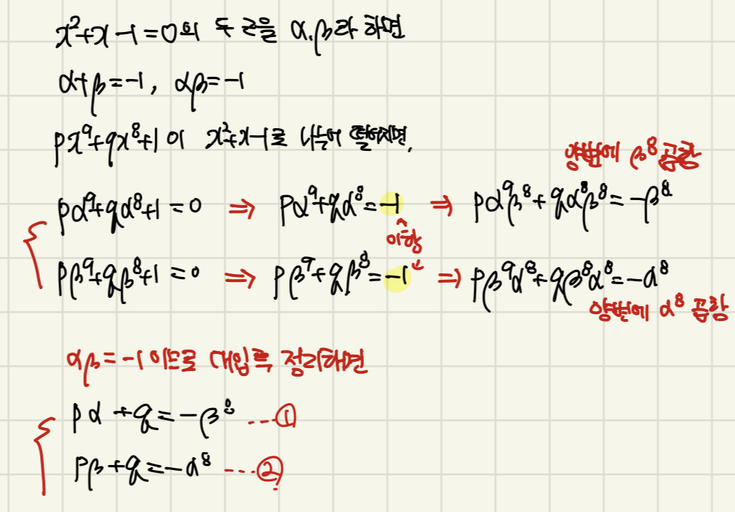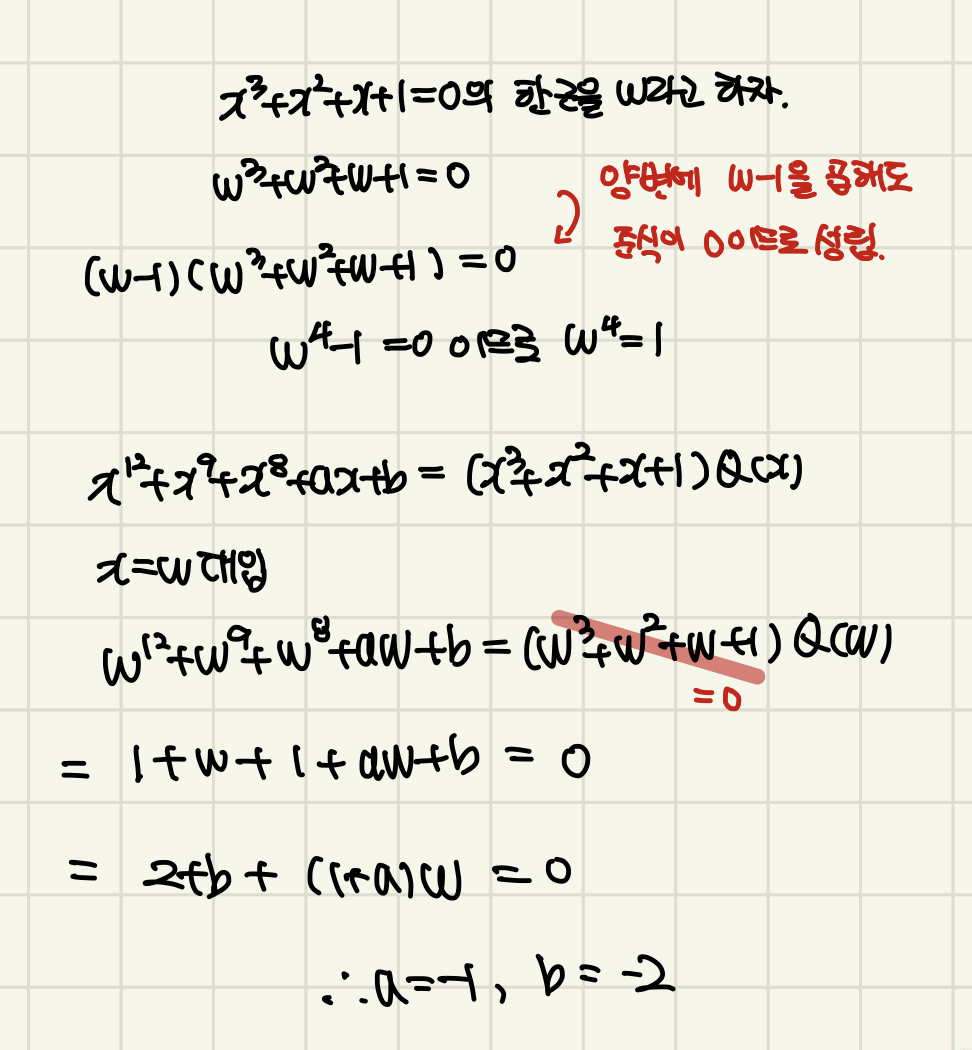 허근 w 쓰는 유형, x^n-1=0을 이용하는 유형, 합과 곱을 이용하여 차수를 낮춰 푸는 유형 등 고난도 문제는 다양합니다. 새로운 유형을 발견하면 더 추가하도록 할게요.