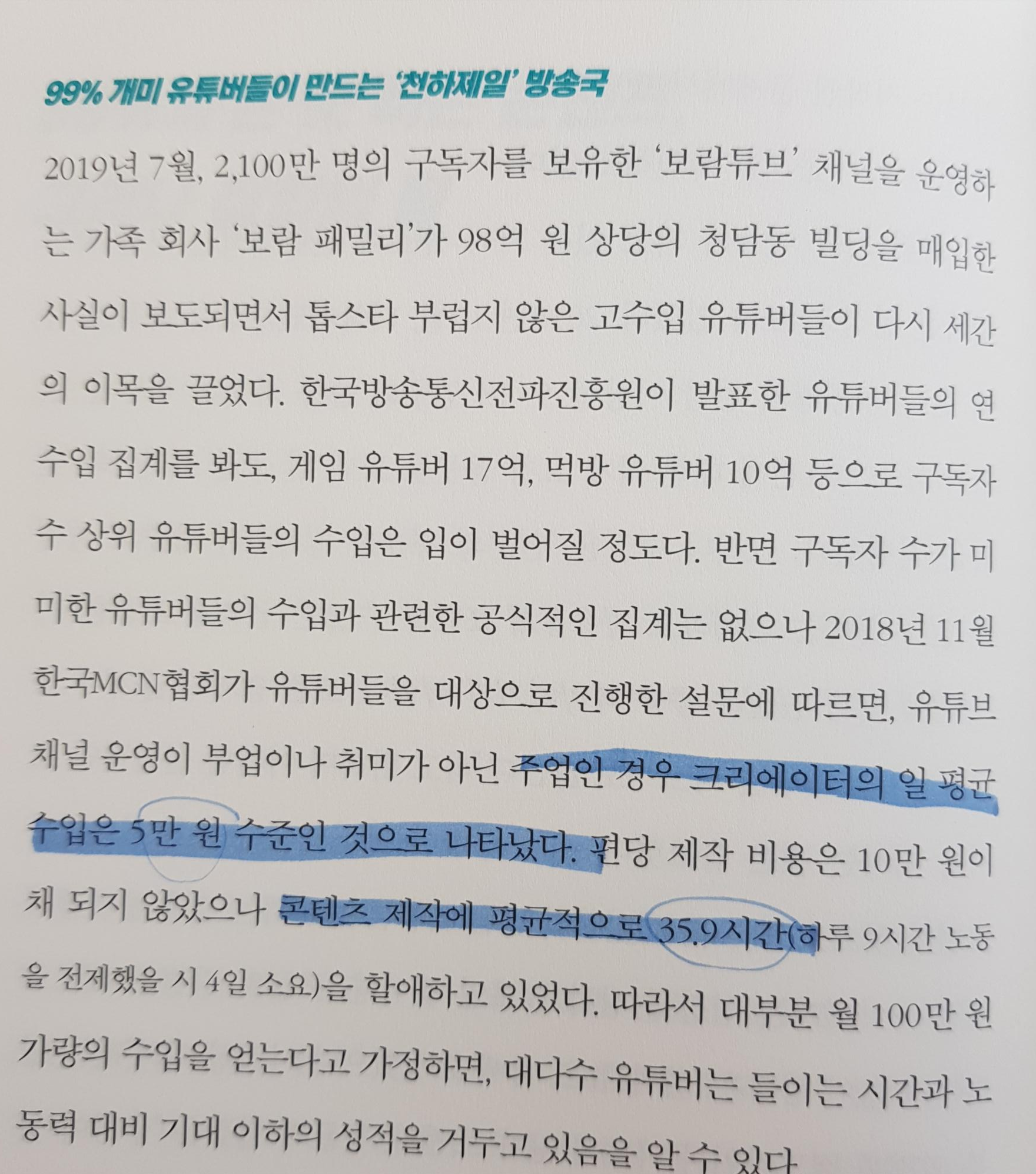 부업이 아닌 주업인 크리에이터 일 수입 평균이 5만원