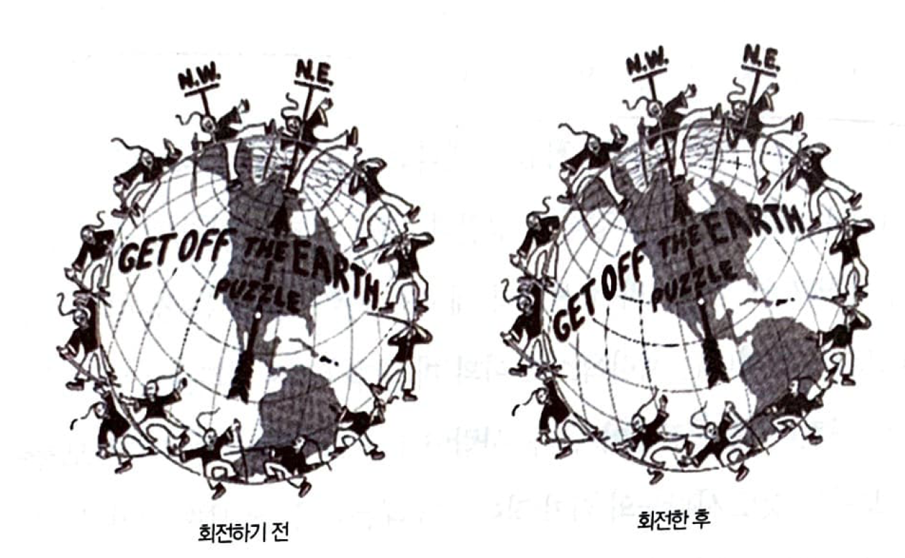 지구 안쪽 그림을 반시계 방향으로 살짝 돌리면,