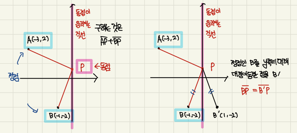 고1 수학에서 배우는 최단거리 구하는 방법에 대해 오늘 알려드리고자 합니다.