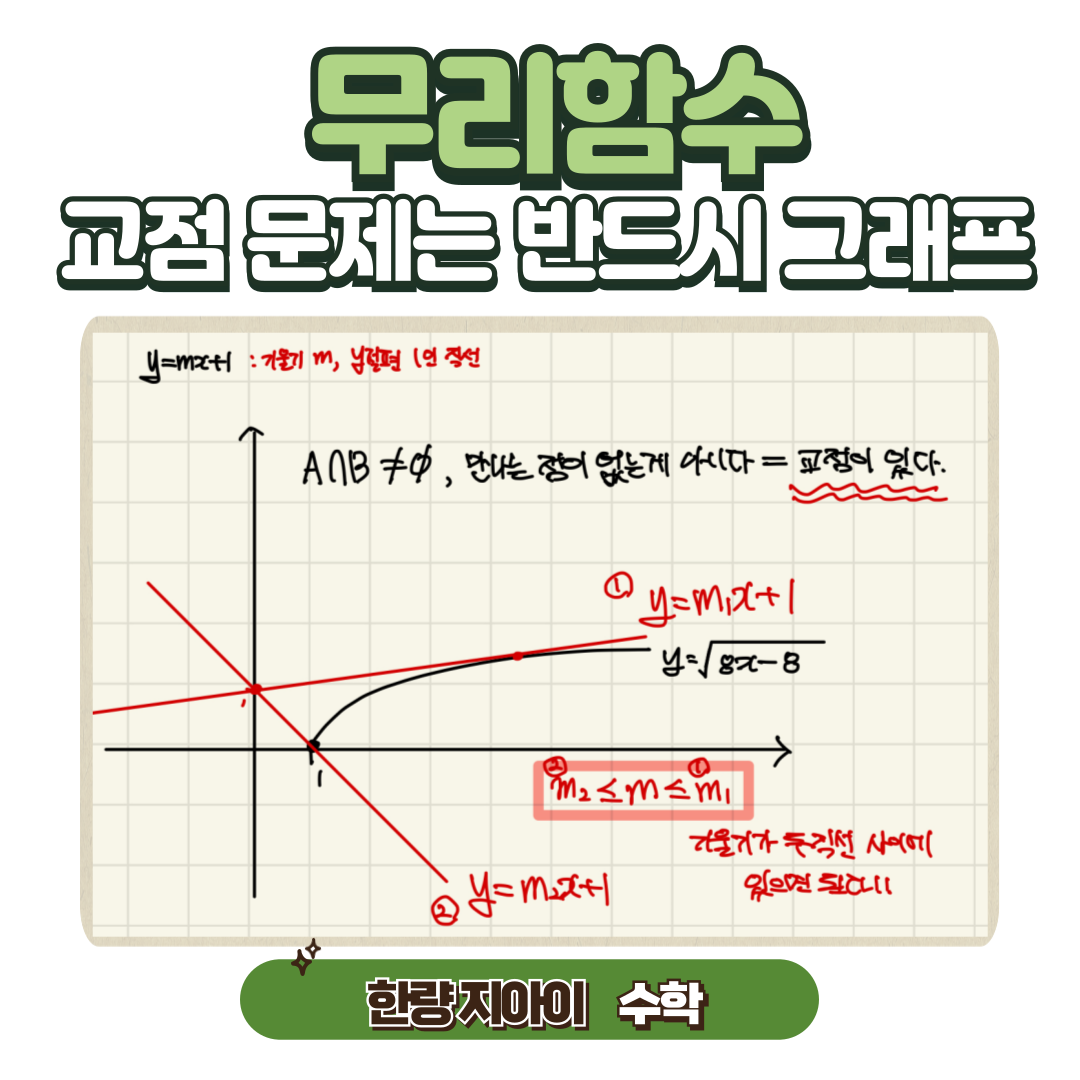 그러나 무리함수의 그래프와 직선의 위치 관계는 반드시 그래프를 그려서 풀어야 하는 문제입니다.