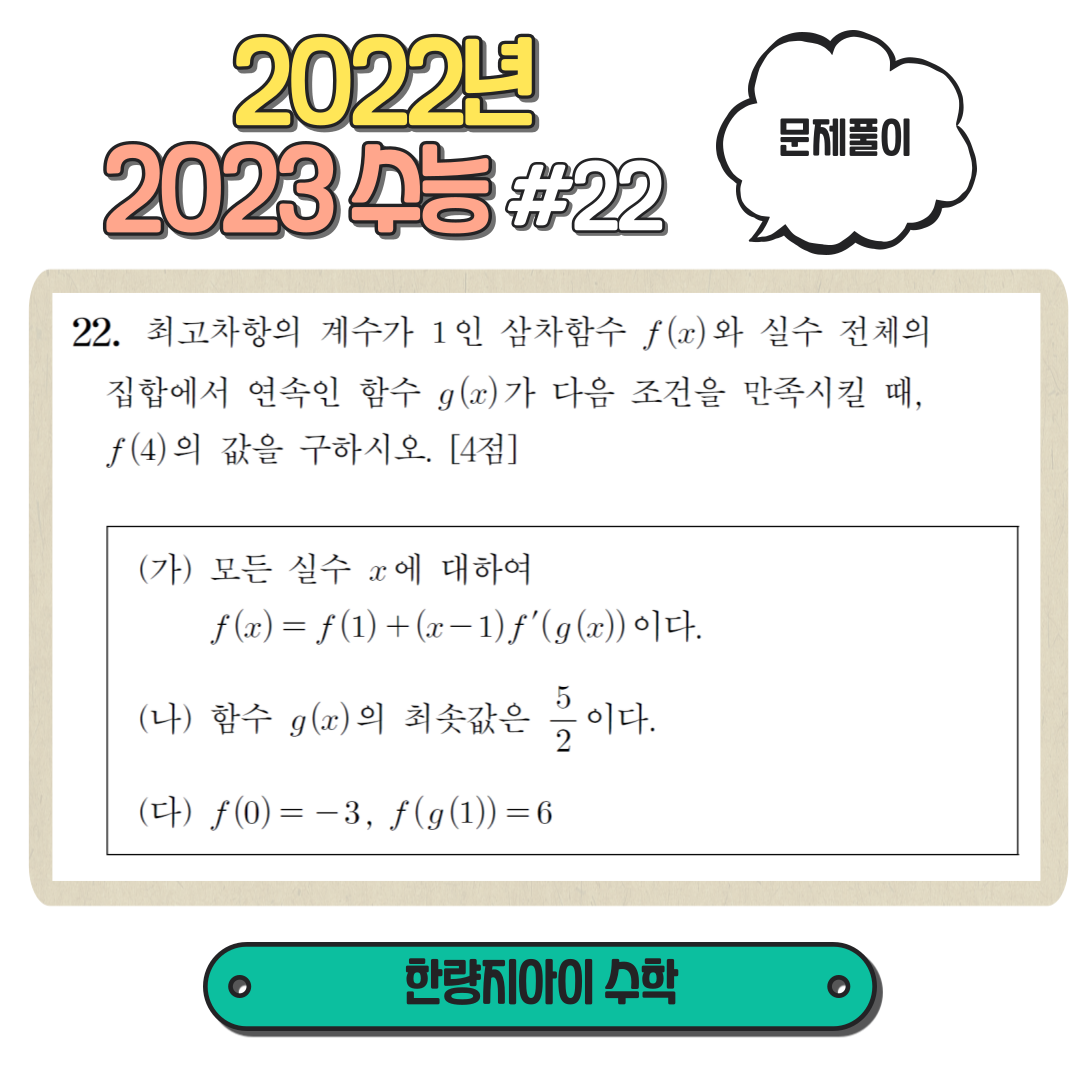 이 문제는 해석이 좀 어려운 편이지만, 생각할 거리를 많이 주는 좋은 문제에요. 역시 수능문제.!