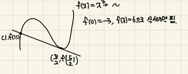 저는 평소에 접선을 이용해서 식을 세우는 편이라 이대로 해봤는데 계수가 분수가 나와서 약간의 짜증이..올라오더군요.