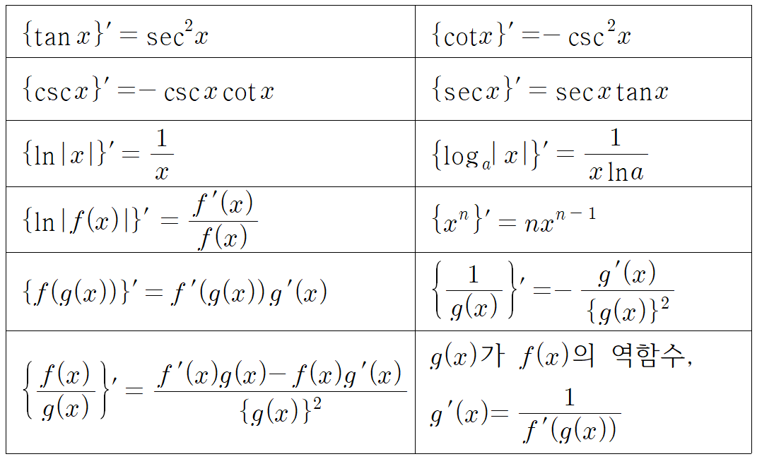 미적분은 외워야 할 공식이 한 두가지가 아니죠. 워낙 양이 많다보니, '미적분 공식은 다외웠니?'라고 물어보면서도 체크해야 할 게 너무 많더라고요. 그래서 간단하게 포스팅 남겨봅니다. 완전 기본적인 내용은 제외했습니다. 아래 내용 정도는 숙지해주셔야 합니다.