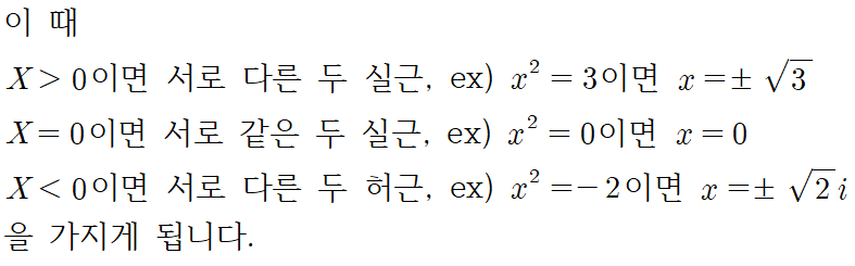 그런데 미지수가 섞여 있어서 근의 부호나 실근/허근을 판별해야 하는 경우에는 어떻게 해야 할까요?