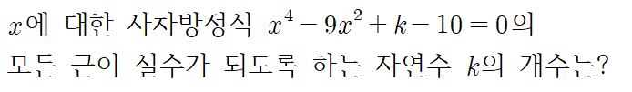 서로 다른 네 실근에 주목합시다. 치환했을 때 두 근이 서로 다른 양수여야 합니다.