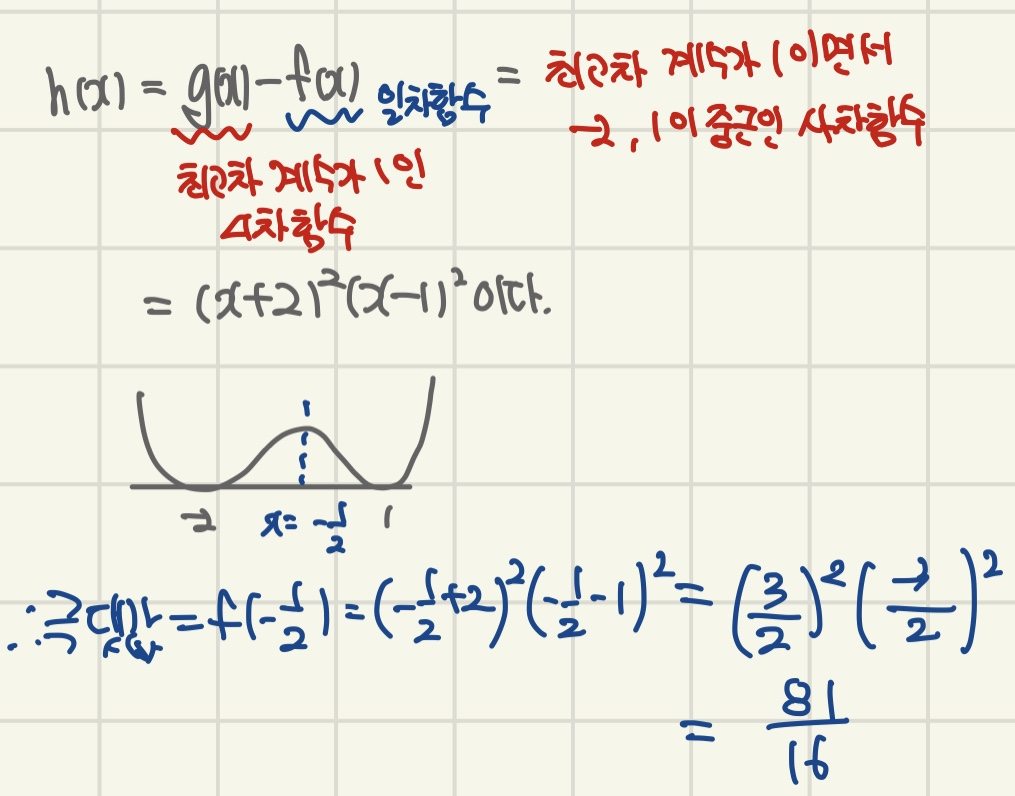 h(x)=g(x)-f(x)이므로 h(x)=0의 근은