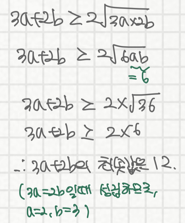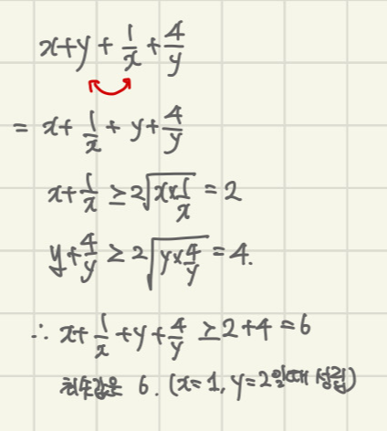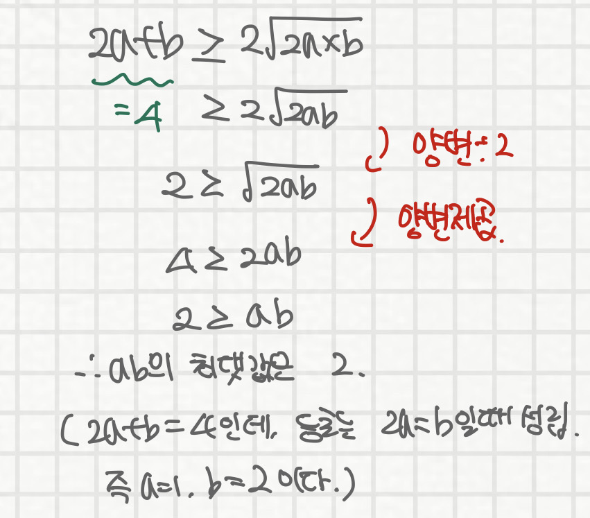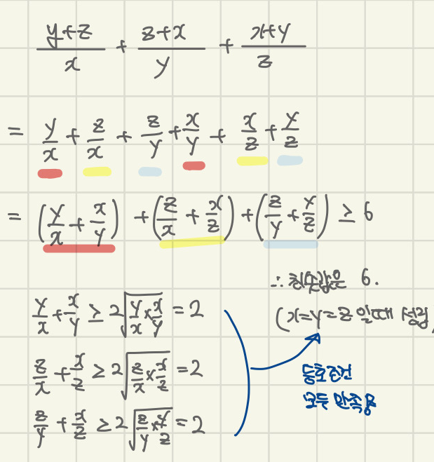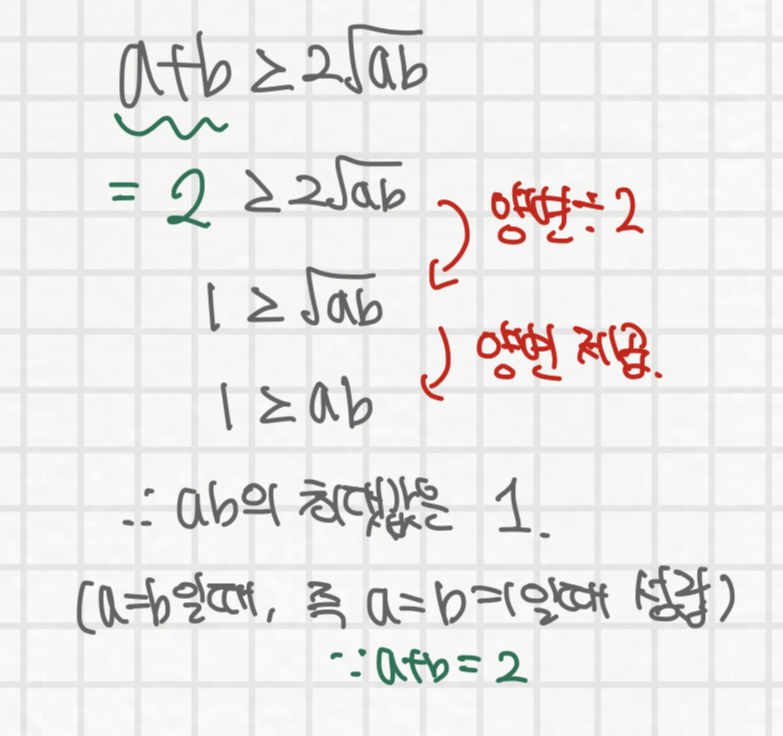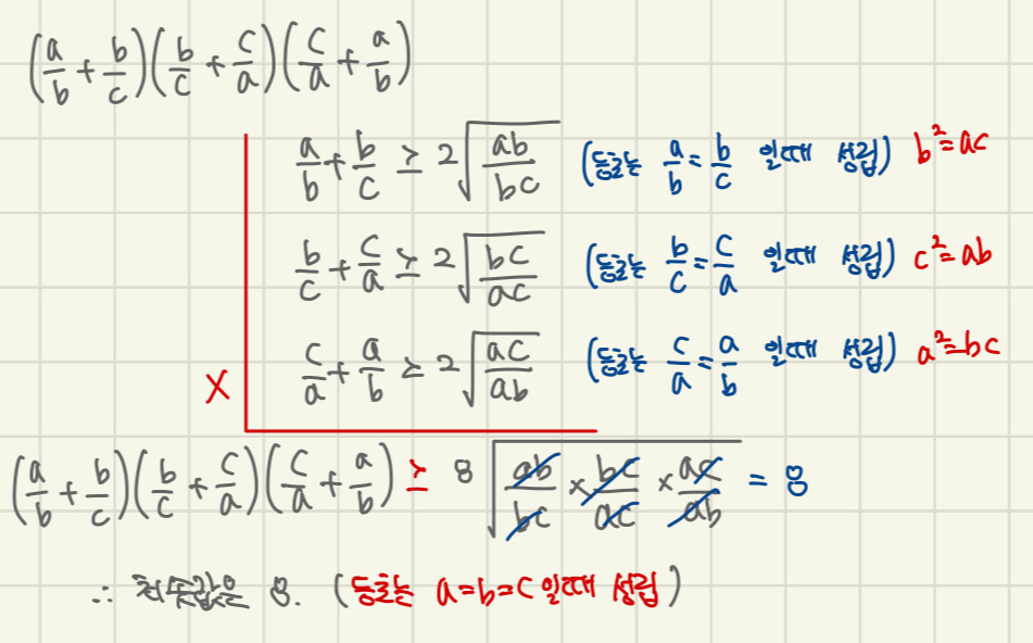 따라서 산술기하 평균 외울 때, 등호 조건 꼭꼭 같이 외우셔야 합니다.