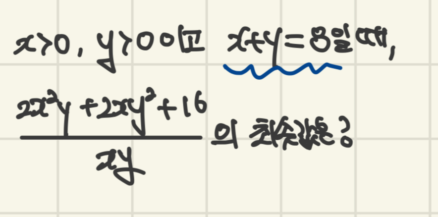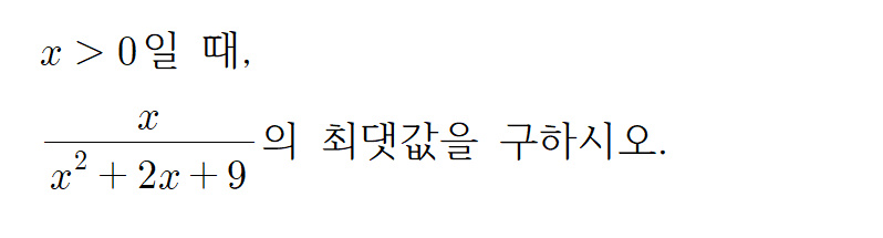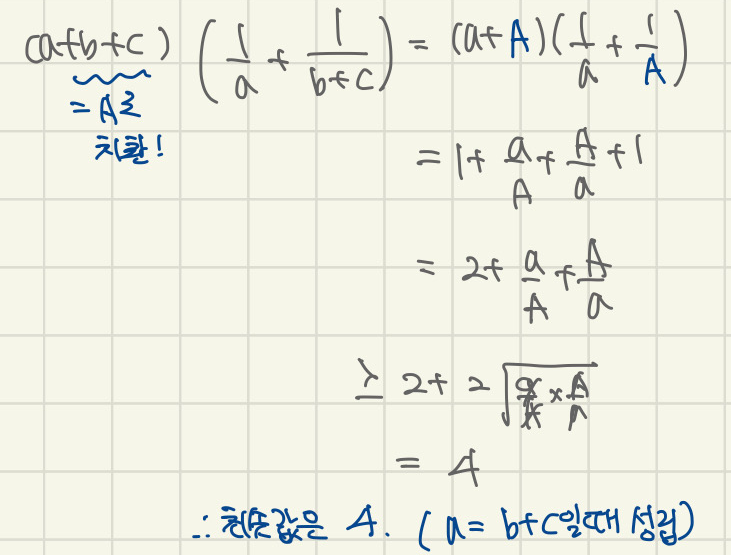 오늘은 코시 슈바르츠 부등식을 이용해서, 산술/기하보다 더 편하게 문제를 풀어볼게요! 저번에 했던 포스팅 내용 중, 분자와 분모에 같은 문자가 있는 경우를 다룰 때 입니다. 만약 코시/슈바르