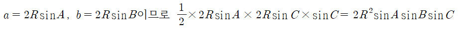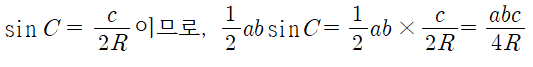 이번에는 두 변 a,b를 사인법칙을 이용하여 바꿔주었더니 ③ 공식이 같이 나왔어요.