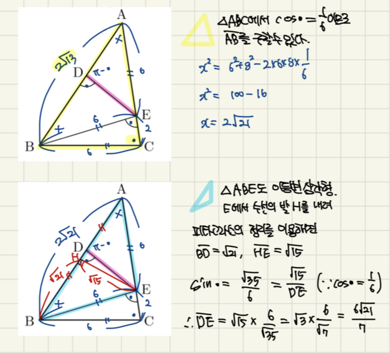 역시나 일단 문제부터 풀어보려고 올리는... 기출 베이스의 삼각함수의 활용 도형 고난도 문제입니다. 우선 문제와 정답부터 업로드하고, 풀이는 차차 업데이트 할게요. 문제1 2022학년도 6월 평