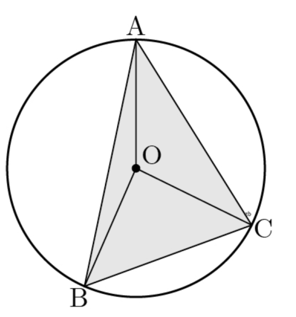 그림과 같이 중심이 O이고 반지름의 길이가 3√3인 원에 내접하는 예각삼각형 ABC에 대하여 △OAB:△OAC=1:2√2이고, BC=3√6일 때, △OAC의 둘레 길이는?
