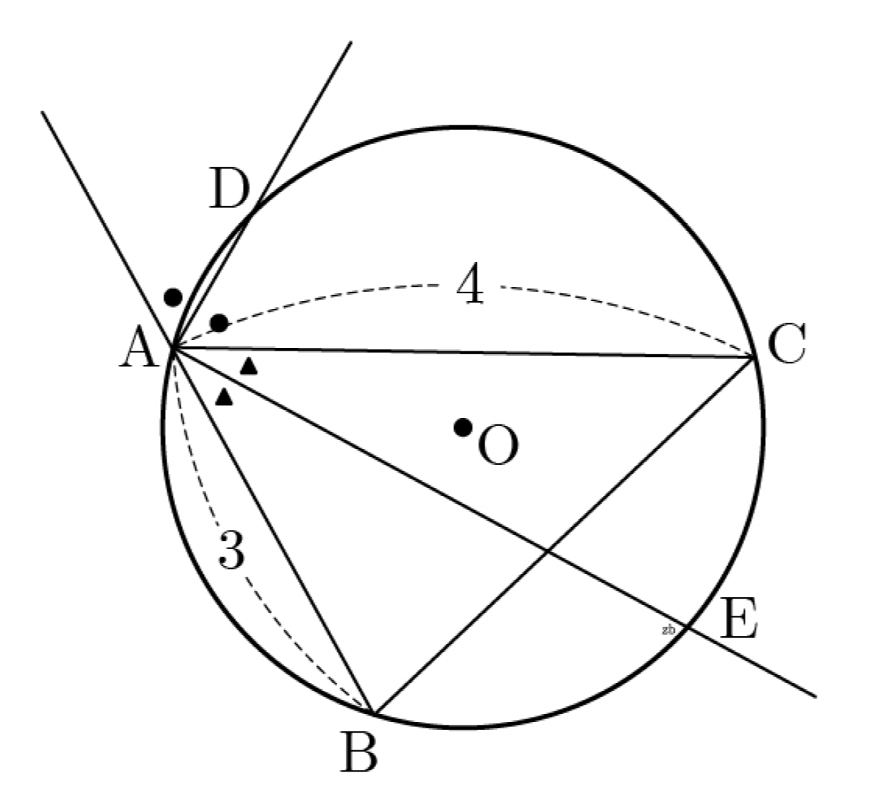 그림과 같이 원 O에 내접하는 △ABC가 있다. AB=3, AC=4, ∠BAC = π/3이고 △ABC에서 ∠A의 외각의 이등분선이 원 O와 만나는 점을 D, △ABC에서 ∠A의 내각의 이등분선이 원 O와 만나는 점을 E라 할 때, 사각형 AECD의 넓이는?