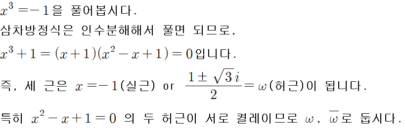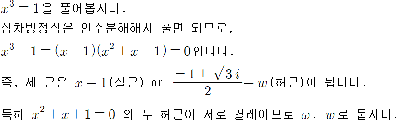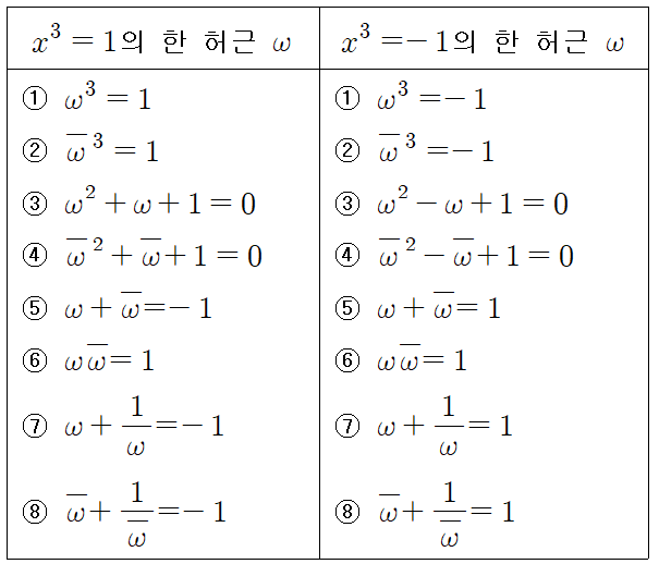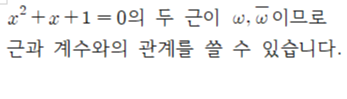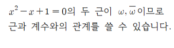 이차방정식의 두 허근이라는 걸 생각한다면 생각보다 쉽게 외울 수 있습니다.