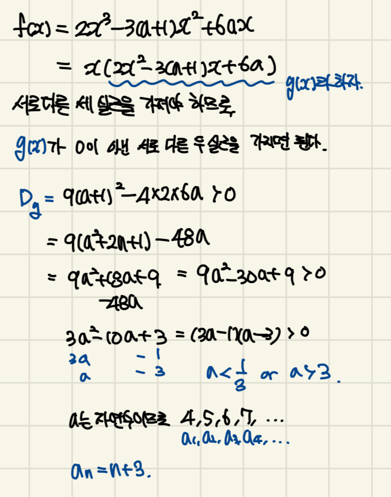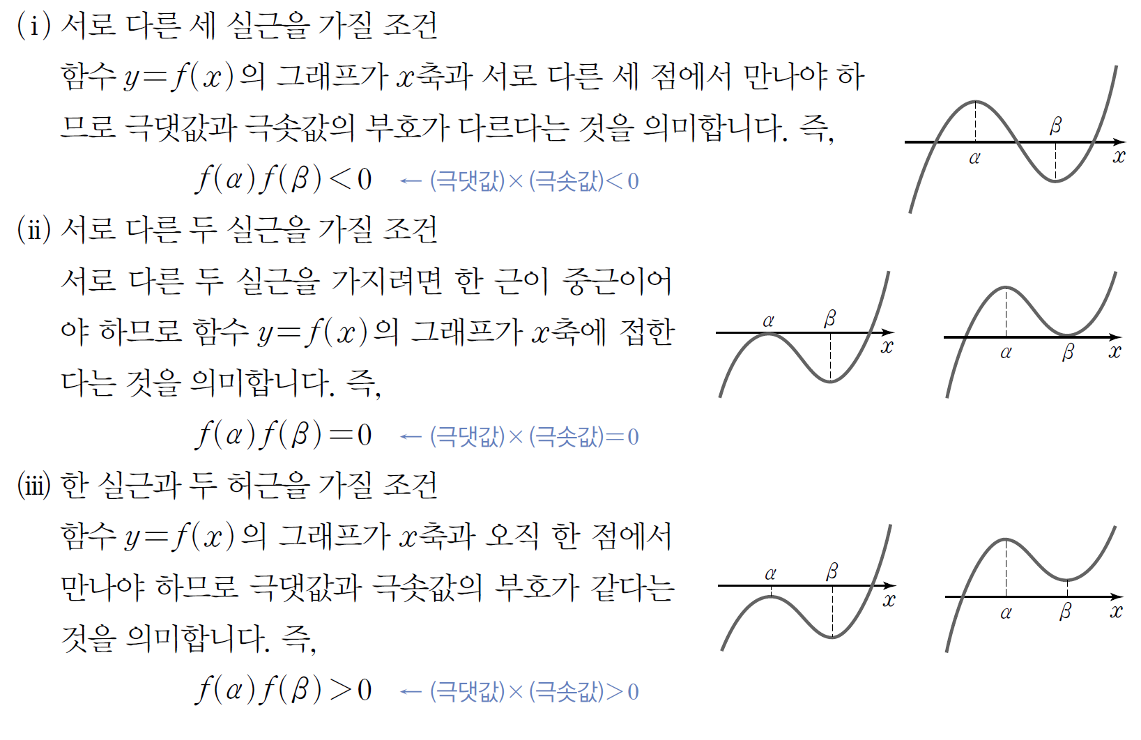 서로 다른 세 실근/두 실근을 갖는다는 조건을