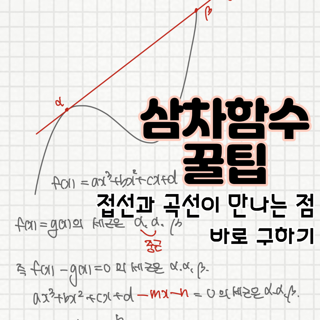 오늘은 삼차함수에서 알아두면 매우 좋은 꿀팁 하나 알려드리려고 합니다. 바로 삼차함수의 접선이 다시 함수와 만나는 점에 관한 내용이에요.