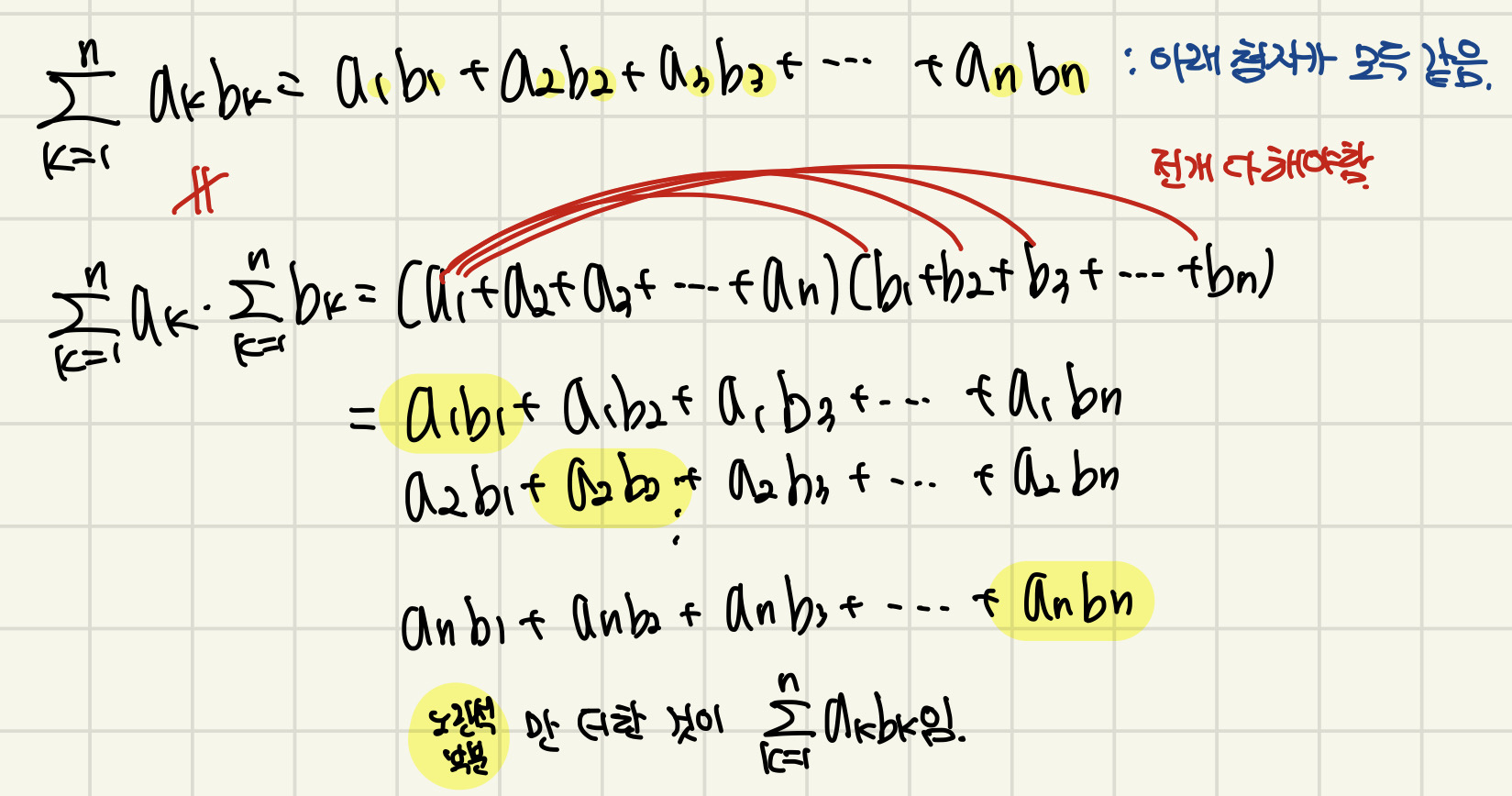1. 합과 곱은 마치 분배법칙처럼 썼지만, 곱과 나눗셈에서는 절대 그렇게 하면 안됩니다.