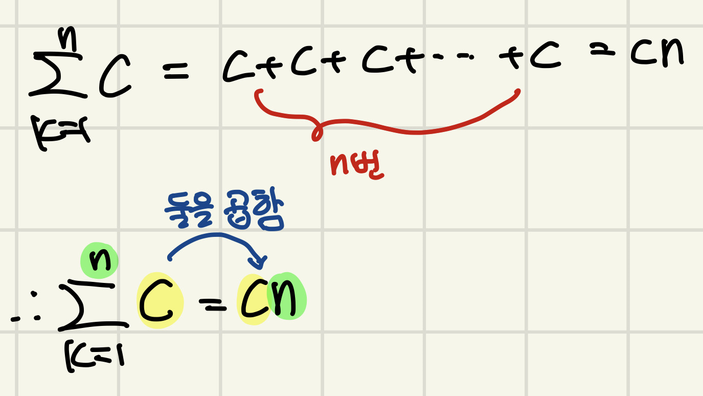 상수의 경우에는 n만큼 상수를 더한 것이므로
