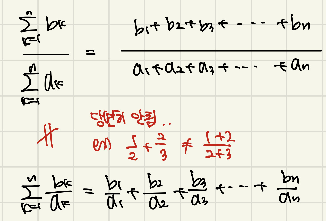 1. 합과 곱은 마치 분배법칙처럼 썼지만, 곱과 나눗셈에서는 절대 그렇게 하면 안됩니다.