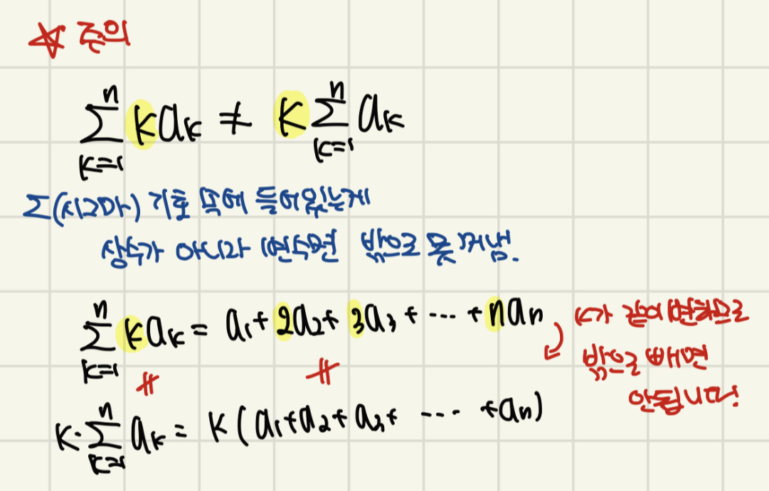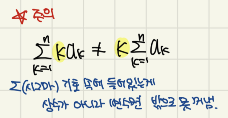 이제부터 시그마 기호 쓸 때의 주의사항을 알아볼게요.