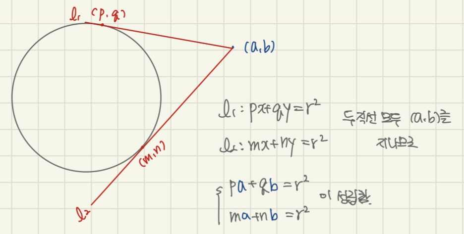 두 접점을 지나는 직선의 방정식