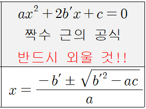 일차항 계수가 짝수인 경우(짝수 근의 공식)까지
