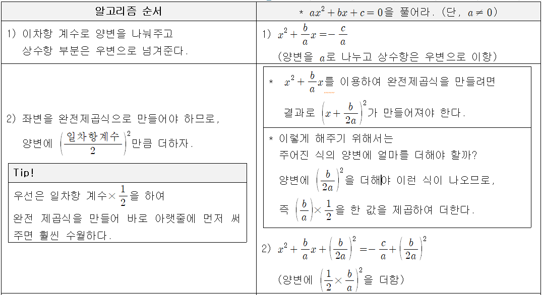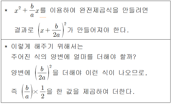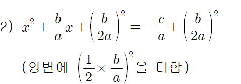 양변에 (일차항계수/2)를 제곱한 값을 더합니다.