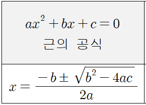 이것을 일반화 한 것이 ‘근의 공식’이죠.