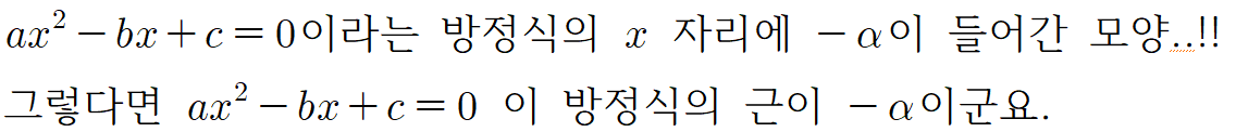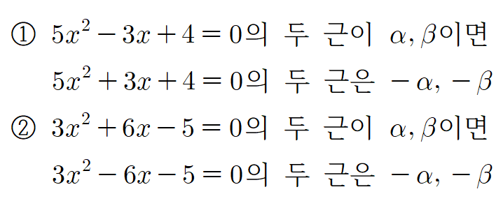 즉, 일차항 계수의 부호만 반대로 쓴 방정식은,