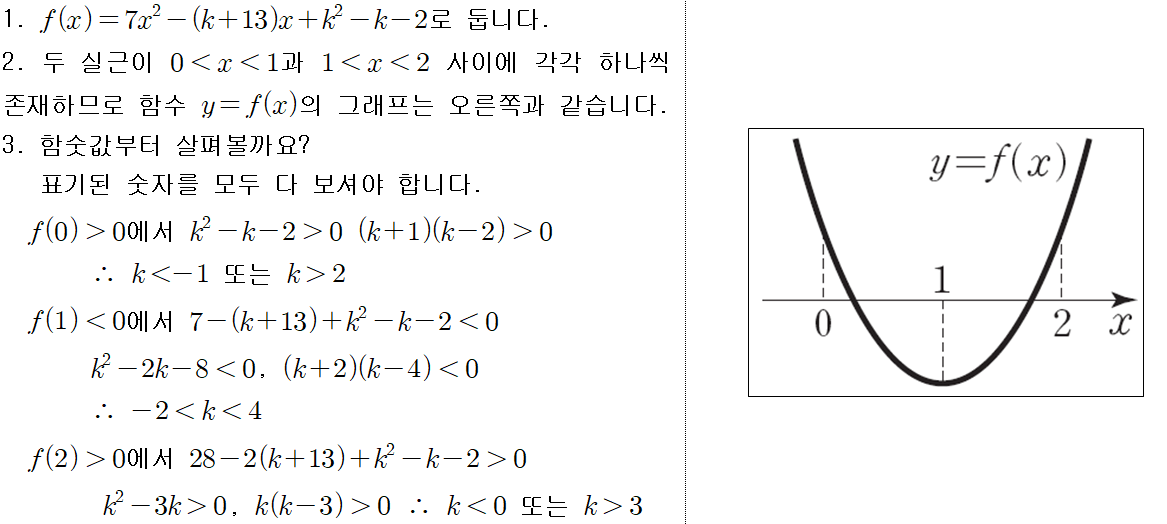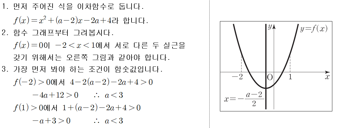 풀이에서 가장 중요한 건 이차함수 그래프를 그리는 부분입니다!