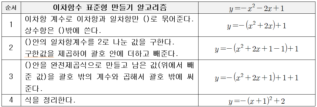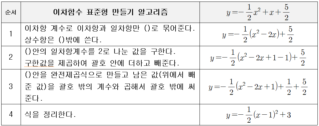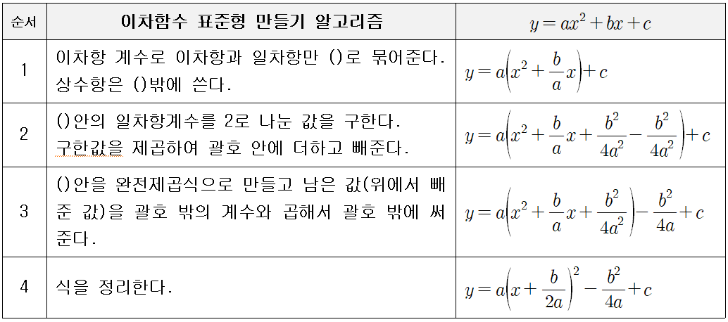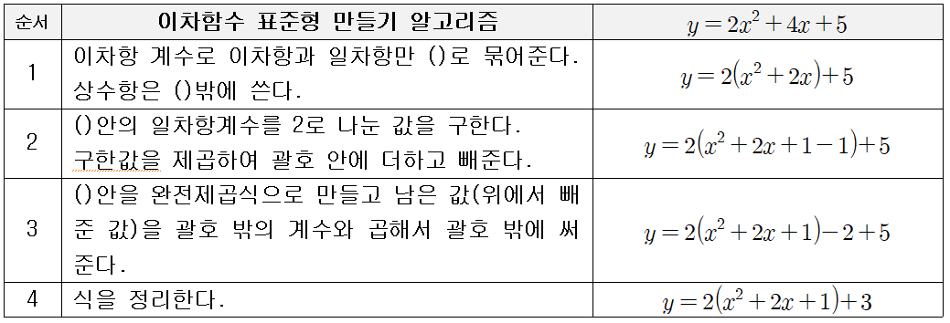 이차함수 표준형 만들기 알고리즘