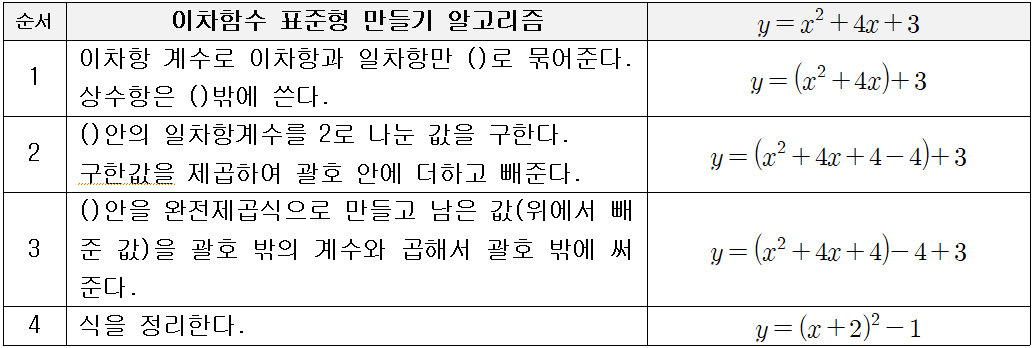 이차함수 표준형 만들기 알고리즘
