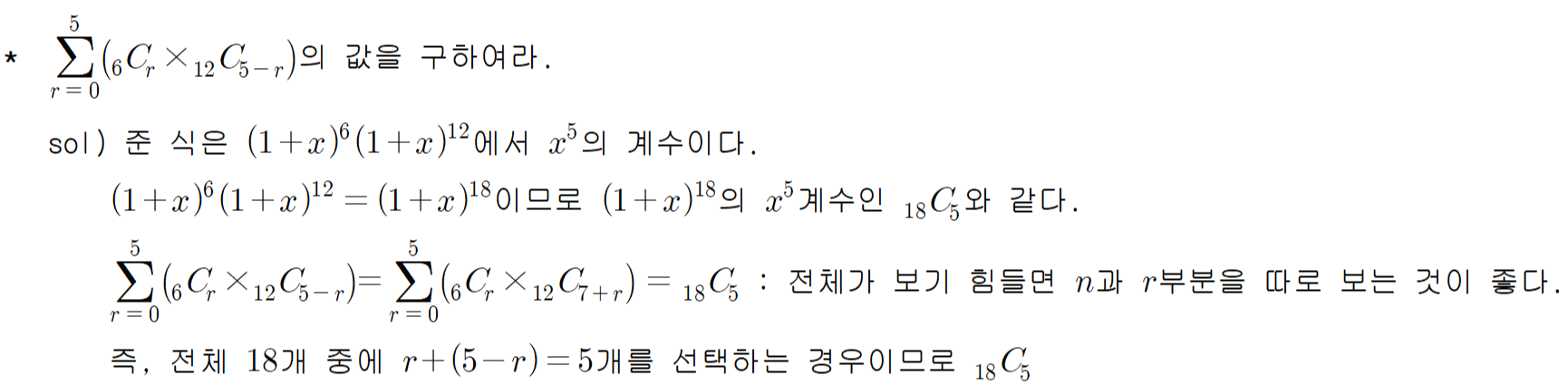 오늘은 이항계수의 성질 중