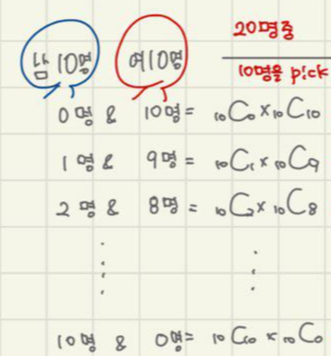전체 20명 중에서 10명을 뽑는 것이니,