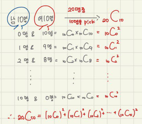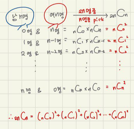 n명을 뽑는 경우의 수를 구해봅시다.